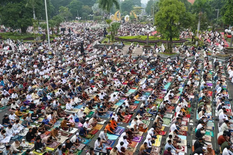 Salat Idul Fitri di Halaman Balai Kota Surabaya, Sabtu (21/3/2026). ANTARA/HO-Pemkot Surabaya