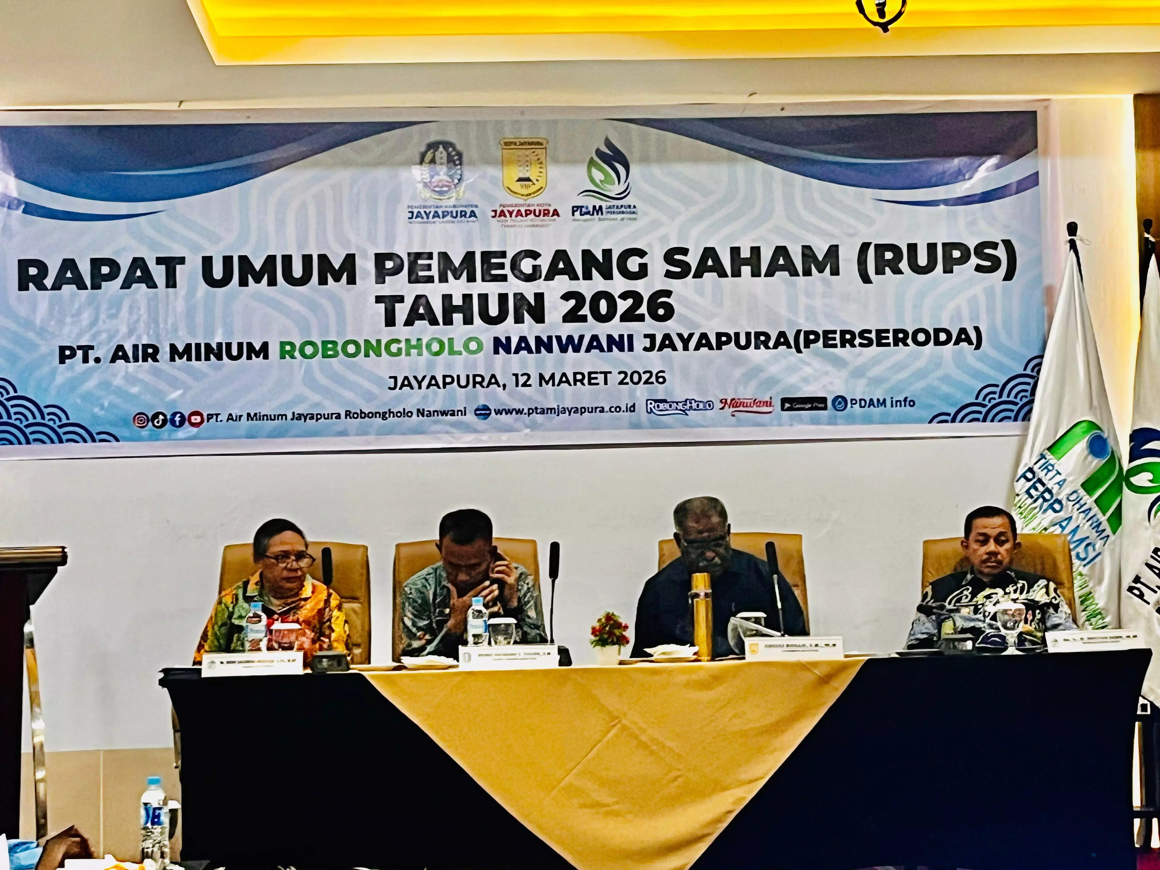 Dalam rangka meningkatkan kinerja dan perbaikan pelayanan air bersih pada masyarakat, PT. Air Minum Jayapura Robongholo Nanwani (Perseroda) menggelar Rapat Umum Pemegang Saham (RUPS) di Jayapura, Kamis (12/3/2026).