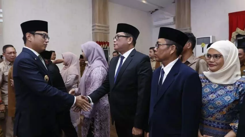 Wali Kota Medan, Rico Tri Putra Bayu Waas, melantik Rudiansyah sebagai Direktur Pengembangan dan SDM PUD Pasar Kota Medan, di Kantor Wali Kota Medan, Senin, 5 Januari 2026.