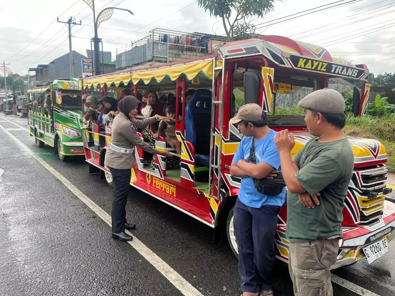 Dalam kegiatan tersebut, petugas memberikan imbauan secara humanis kepada pengemudi dan penumpang odong-odong terkait pentingnya keselamatan, kelengkapan kendaraan, serta larangan penggunaan odong-odong di jalan umum yang memiliki risiko tinggi terhadap keselamatan pengguna jalan.