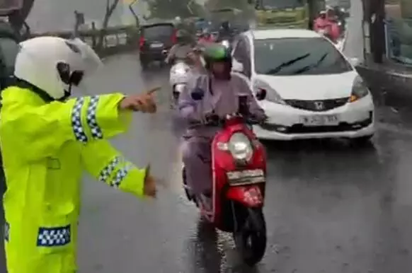 Diguyur hujan saat berpuasa, Satlantas Polresta Malang Kota tetap siaga urai kemacetan