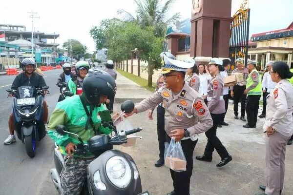 "Kegiatan ini adalah wujud kehadiran Polri di tengah masyarakat, khususnya di bulan suci ini. Kami berkolaborasi dengan Bapenda Sulut untuk berbagi kebahagiaan sekaligus memberikan edukasi secara humanis kepada pengguna jalan agar tetap mengutamakan keselamatan dalam berkendara," ujar Wadir Lantas seperti dilaporkan Kontributor Elshinta, Franky Pangkey, Jumat (6/3).