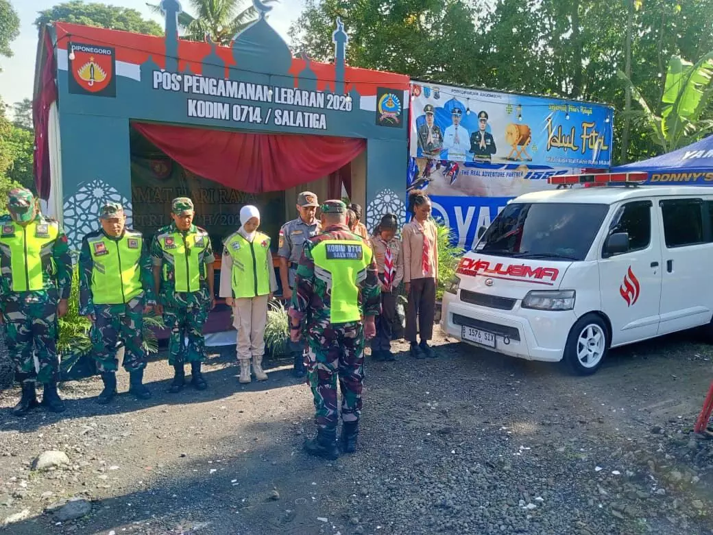 Sejumlah personel TNI dari Kodim 0714 Salatiga, Jawa Tengah nampak bersiaga di Posko Pengamanan (Pospam) depan Pabrik SCI guna membantu kelancaran arus mudik balik lebaran, Jumat (20/3/2026). Pendirian Pospam mendapat sambutan hangat dari berbagai pihak.