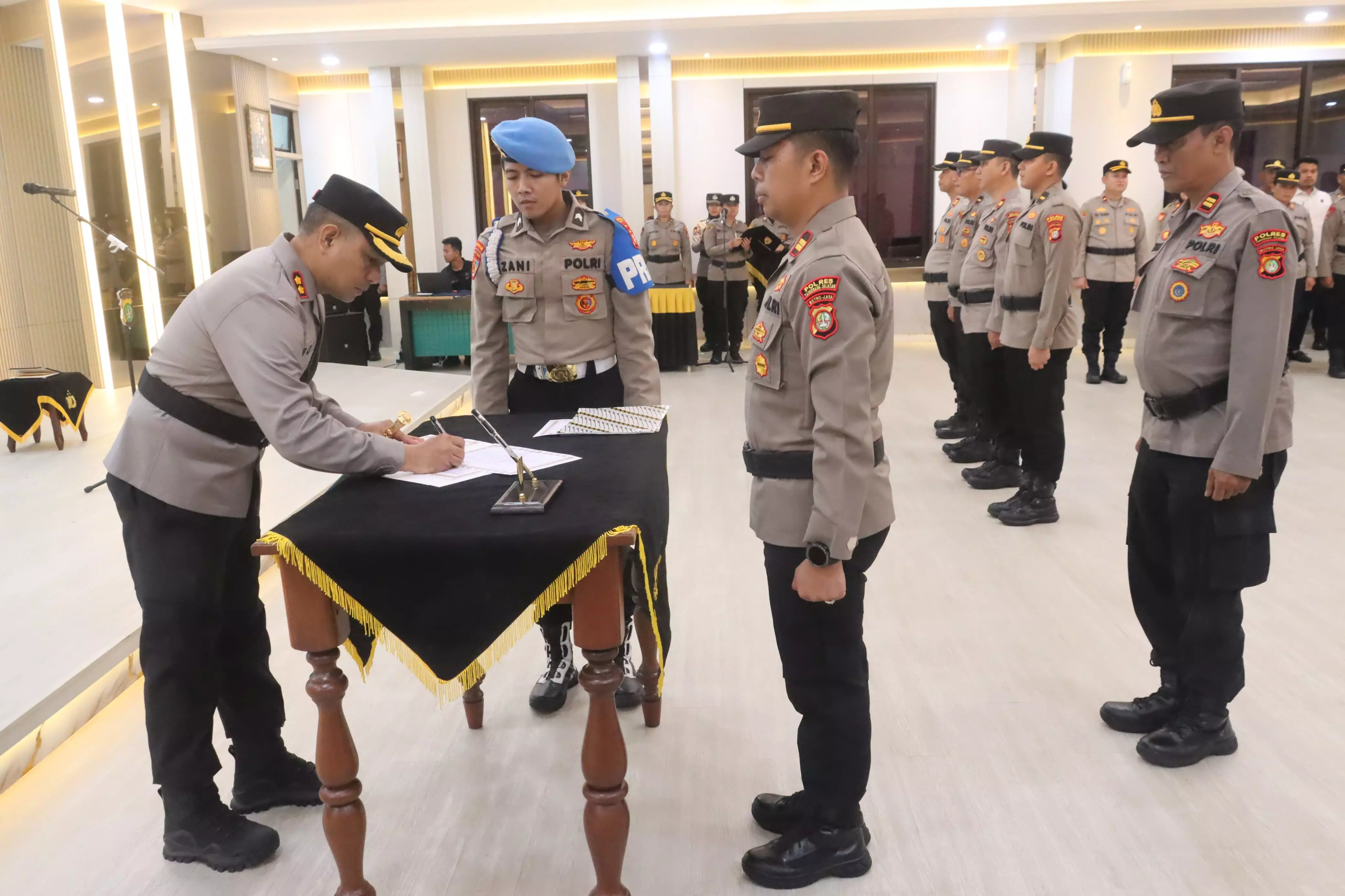 Upacara sertijab digelar di Aula Guyub Lantai 4 Polres Tangerang Selatan. Kegiatan tersebut turut dihadiri Wakapolres Tangsel Kompol Muchammad Tri Yandi Permana, para Pejabat Utama (PJU) Polres, para Kapolsek jajaran, serta personel dari masing-masing satuan kerja.