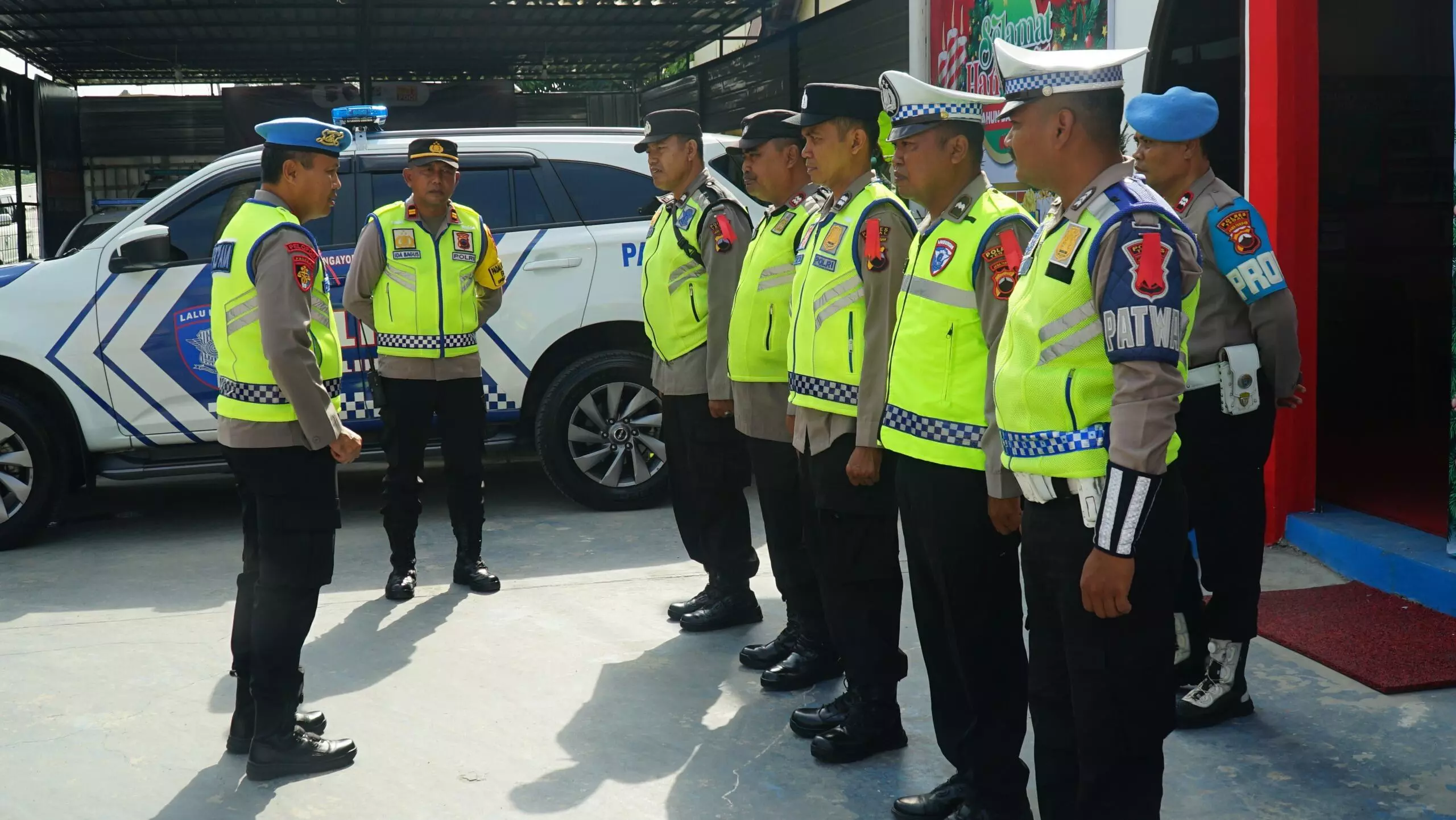 Dalam rangka Operasi Lilin 2025 guna pengamanan Natal 2025 dan Tahun Baru 2026 (Nataru), Kapolres Tegal AKBP Bayu Prasatyo bersama Pejabat Utama (PJU) Polres Tegal melaksanakan pengecekan Pos Terpadu Exit Tol Adiwerna, pada Senin, 22 Desember 2025.