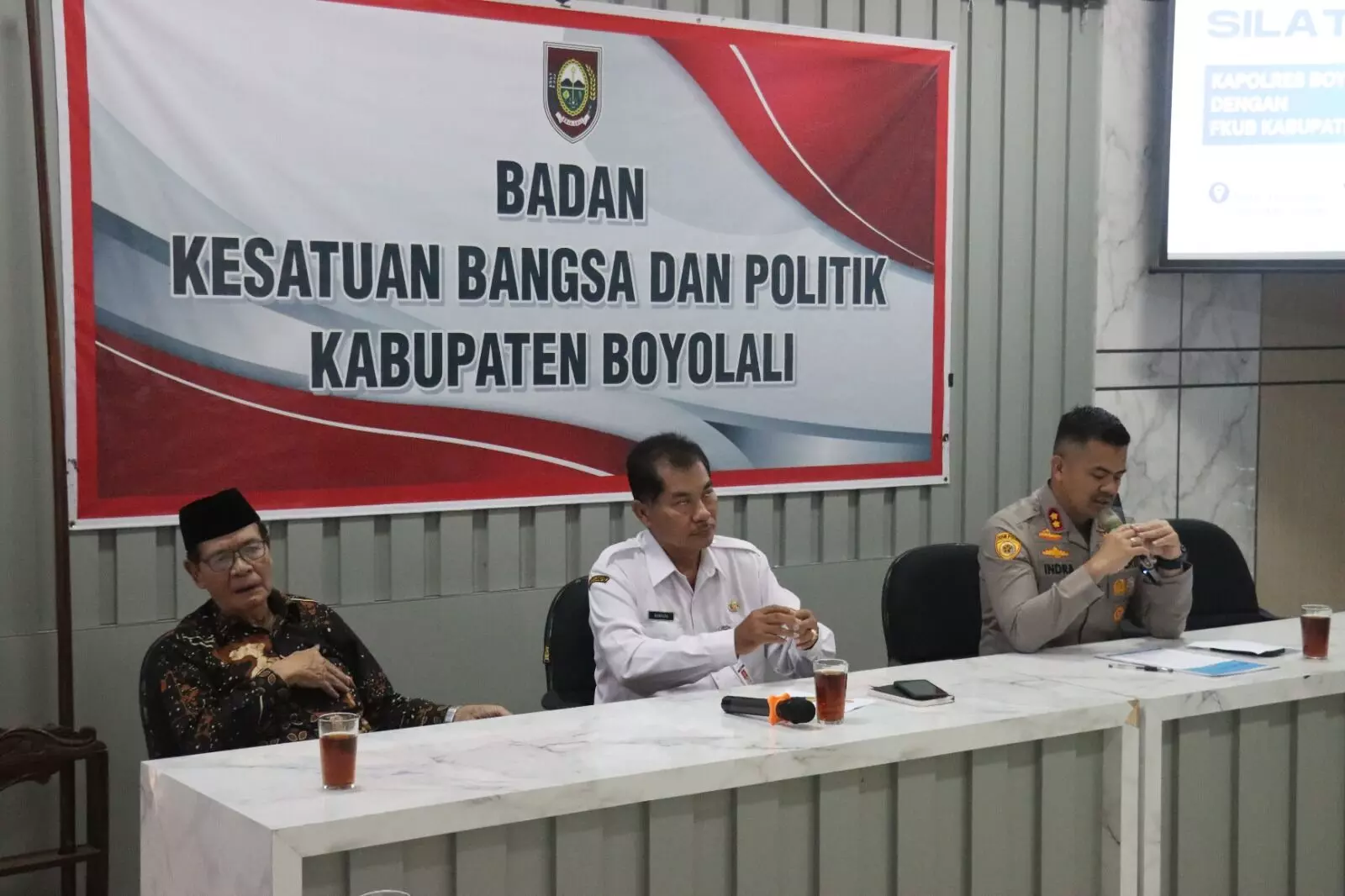 Dalam kesempatan tersebut, Kapolres Boyolali AKBP Indra Maulana Saputra menyampaikan rasa syukur dan apresiasi atas sambutan hangat dari Kesbangpol dan FKUB Boyolali. Kapolres memperkenalkan diri sebagai warga baru di Kabupaten Boyolali dan berharap dapat diterima serta didukung dalam menjalankan amanah sebagai Kapolres Boyolali.
