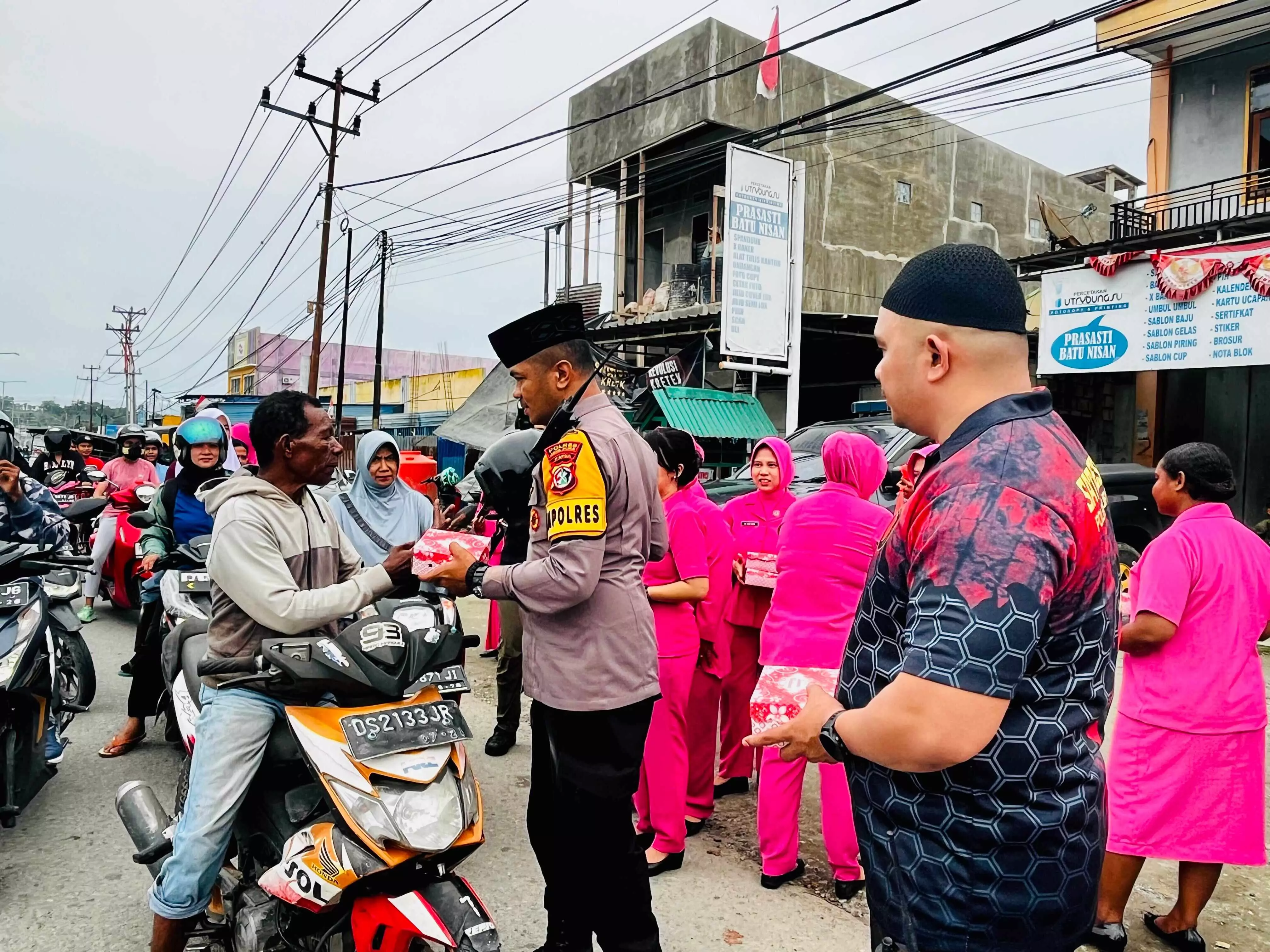 Polres Jayapura - Bhayangkari bagikan takjil gratis pada masyarakat dan pengendara di Papua