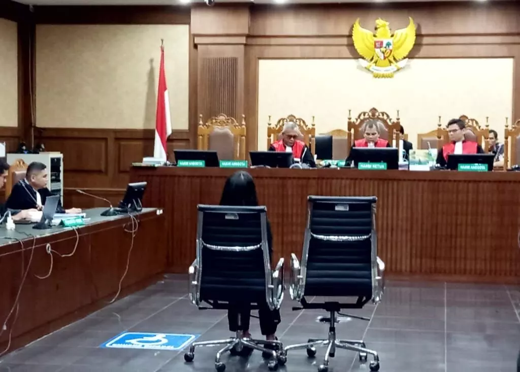 Terdakwa Marcella Santoso membacakan duplik pribadi dalam persidangan di Pengadilan Tindak Pidana Korupsi Jakarta Pusat. Dalam penyampaiannya, Marcella menegaskan dukungannya terhadap pemberantasan mafia peradilan, namun membantah dirinya terlibat dalam praktik tersebut.