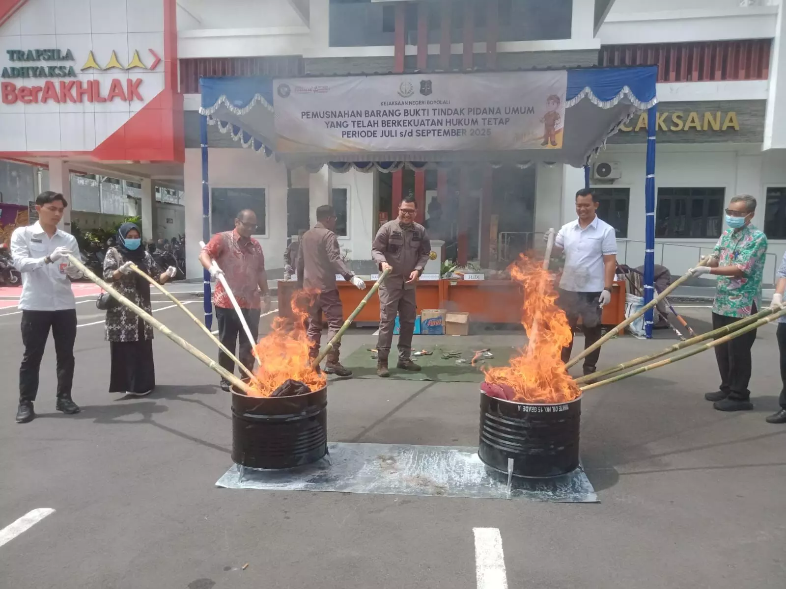 Kejaksaan Negeri Boyolali, Jawa Tengah memusnahkan sejumlah barang bukti yang telah memiliki kekuatan hukum tetap pada periode bulan Juli hingga September 2025.