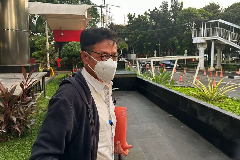 Mantan Sekjen Kemenaker Hery Sudarmanto setelah gagal membaur dengan rombongan pegawai Komisi Pemberantasan Korupsi guna menghindari para jurnalis yang menunggunya di Gedung Merah Putih KPK, Jakarta, Rabu (11/6/2025). ANTARA/Rio Feisal/aa.