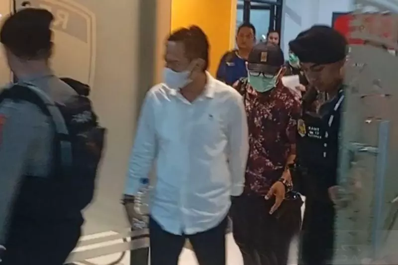 Bupati Cilacap Syamsul Auliya Rachman keluar dari Gedung Satreskrim Polresta Banyumas di Purwokerto, Kabupaten Banyumas, Jawa Tengah, Jumat (13/3/2026) malam, sebelum dibawa ke Jakarta setelah menjalani pemeriksaan awal yang dilakukan tim penyidik KPK. ANTARA/Sumarwoto