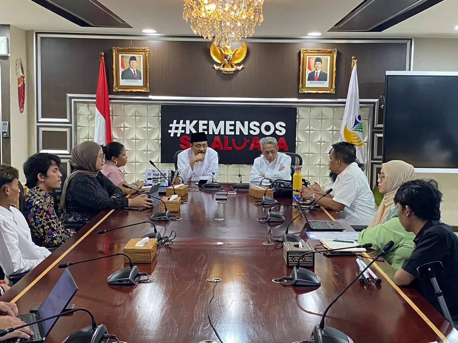 Mensos Saifullah Yusuf bersama Wamensos Agus Jabo Priyono menerima aktivis Himpunan Jiwa Sehat, Yenny Rosa Damayanti, di Kantor Kementerian Sosial, Jakarta, Jumat (27/2/2026)