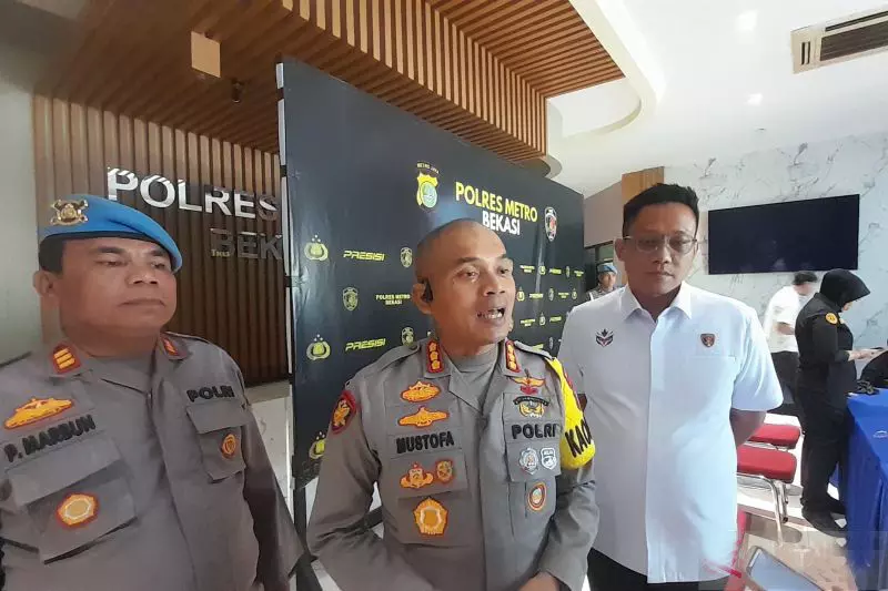 Kapolres Metro Bekasi Komisaris Besar Pol. Mustofa saat diminta keterangan di Mapolres setempat, Senin (20/10/2025).(ANTARA/Pradita Kurniawan Syah).