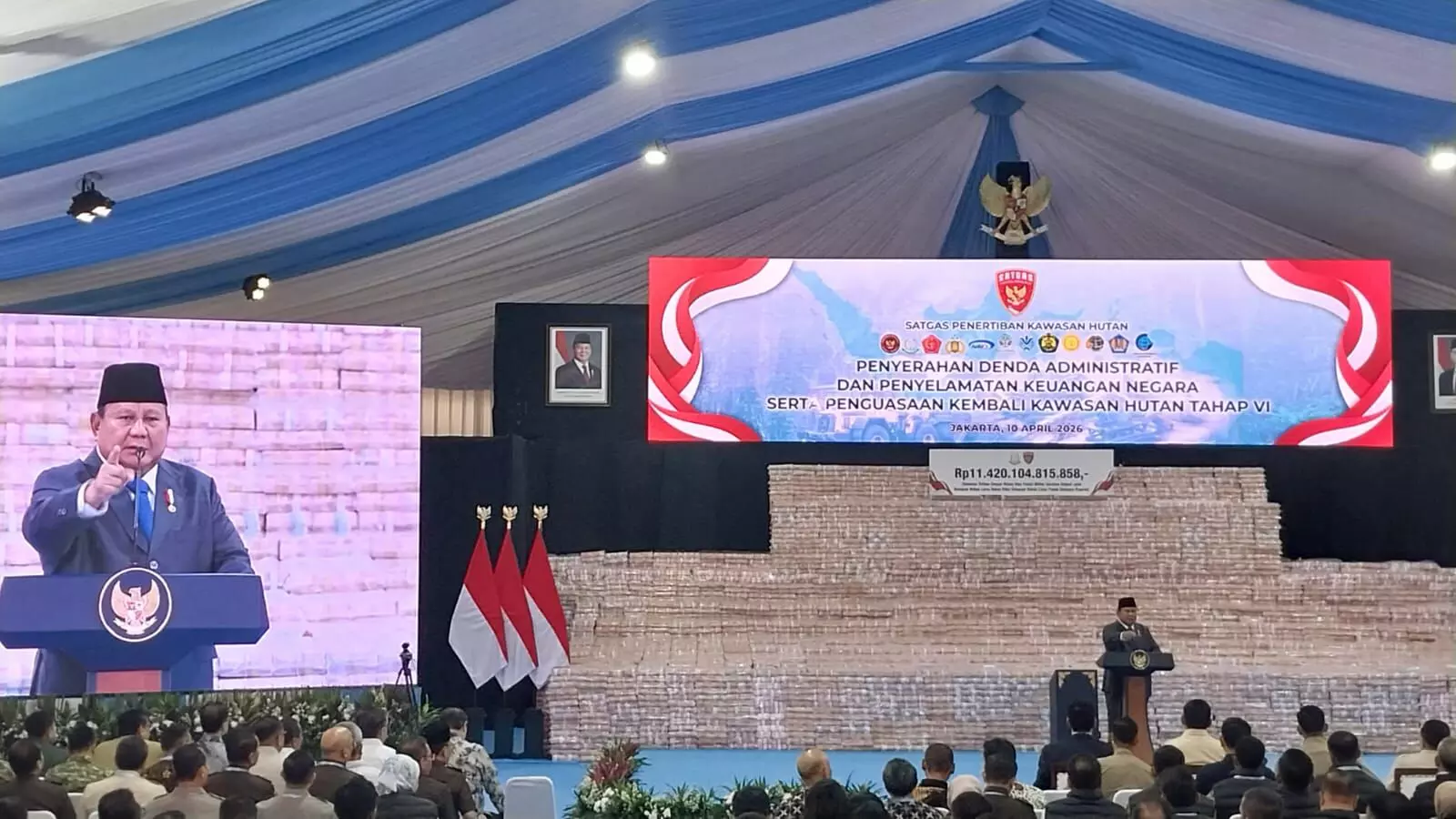 “Kita tidak akan gentar. Kita akan gunakan semua kewenangan untuk menegakkan hukum,” ujar Prabowo dalam arahan di acara Penyerahan Denda Administratif dan Penyelamatan Keuangan Negara serta Penguasaan kembali Kawasan Hutan Tahap VI di Kejaksaan Agung RI, Jakarta, Jumat (10/4/2026).