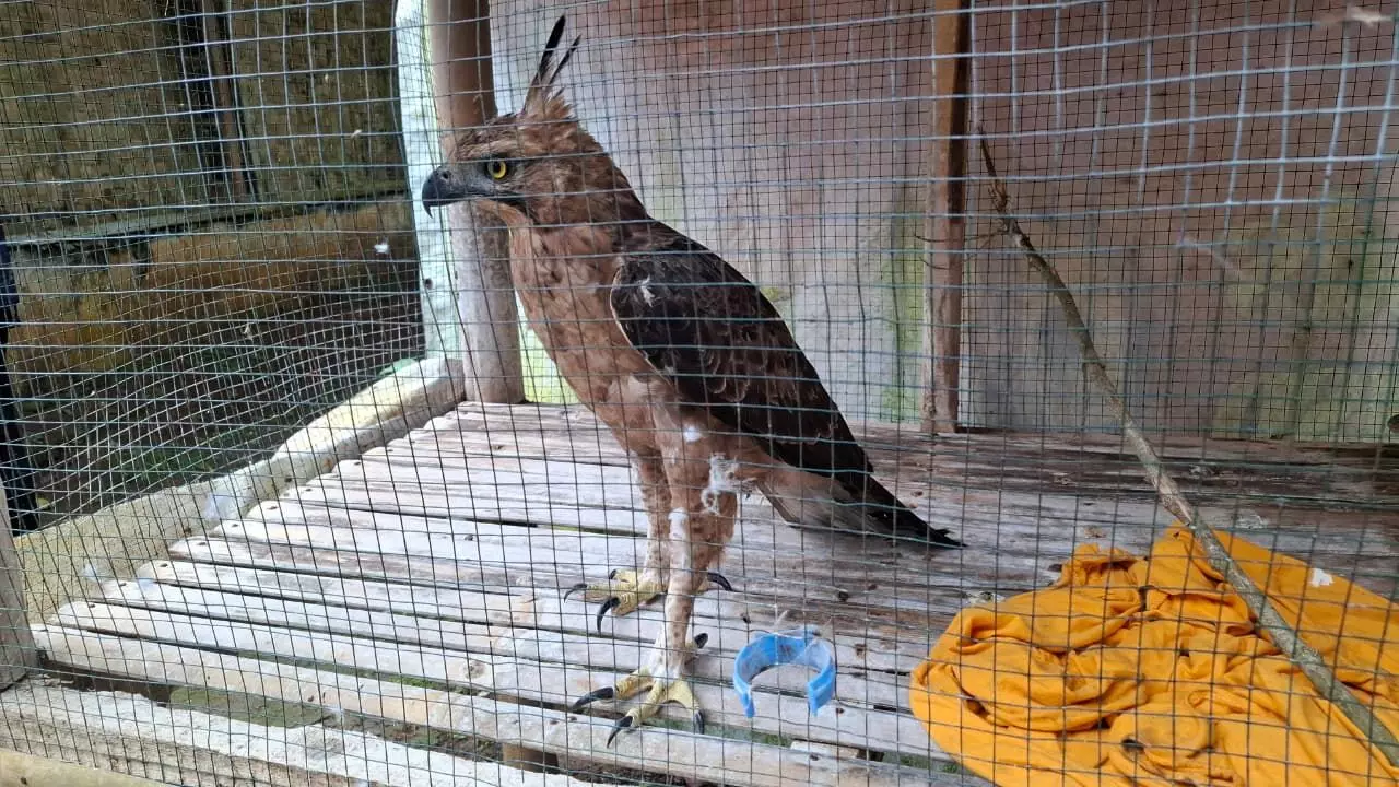 Elang Jawa kemudian ditempatkan sementara waktu ke kandang yang ukurannya lebih besar milik relawan Jaga Satwa.