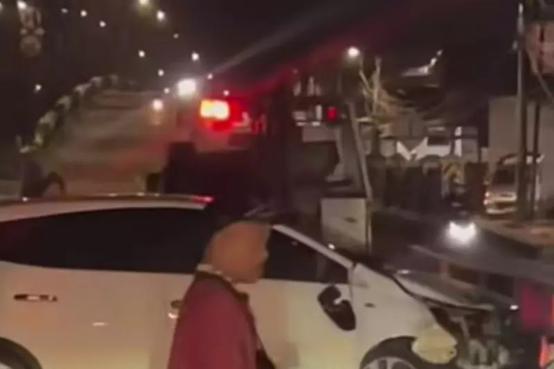 Tangkapan layar - Sebuah minibus bernomor polisi B-2791-SRQ yang dikemudikan oleh pria bernama Daniel Gunawan menghantam pembatas Jalan Pangeran Tubagus Angke, Jakarta Barat, Minggu (8/2/2026) pagi. ANTARA/Risky Syukur.