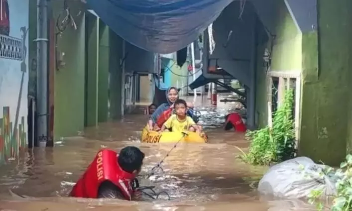 Arsip foto - Pihak kepolisian mengevakuasi warga yang terdampak banjir di Jalan Kebon Pala II, Kampung Melayu, Jatinegara, Jakarta Timur, Selasa (4/3/2025). (ANTARA/Siti Nurhaliza).