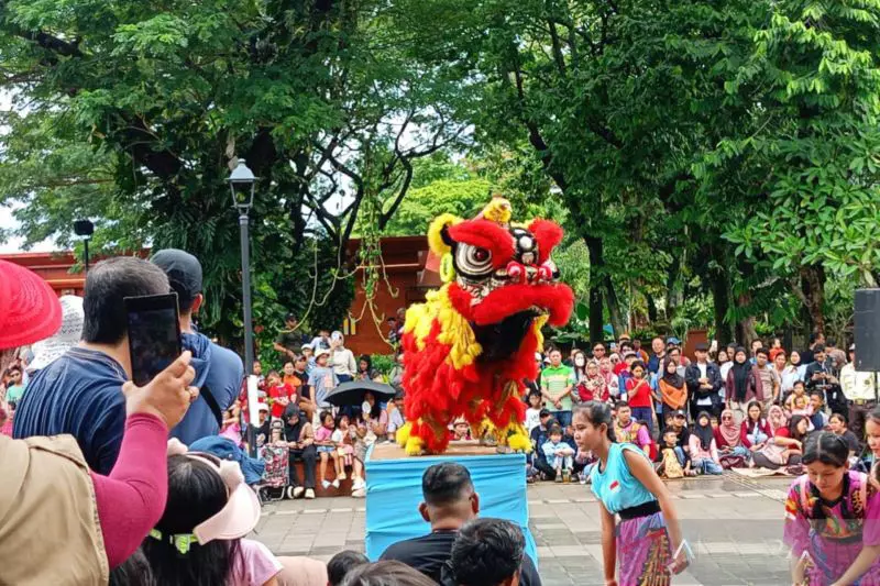 Salah satu daya tarik utama Festival Pecinan, yakni pertunjukan seni tradisional, seperti atraksi barongsai yang tampil memukau di hadapan pengunjung.