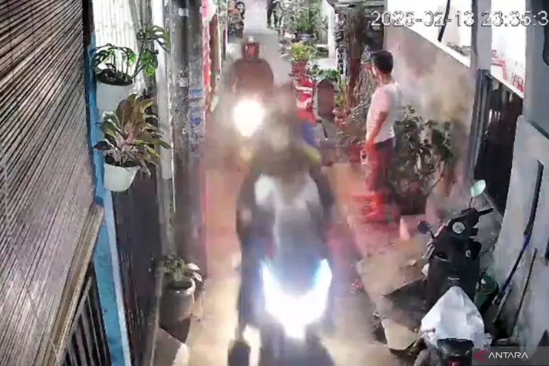 Rekaman CCTV penangkapan dua pria dan seorang perempuan yang diduga sedang hamil saat aksi kejar-kejaran membawa senjata tajam (Sajam) di kawasan Otista, Jatinegara, Jakarta Timur (Jaktim), Sabtu (13/2/2026) pukul 23.35 WIB. (ANTARA/Siti Nurhaliza).
