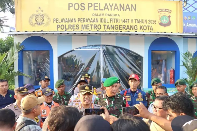 Kapolres Metro Tangerang Kota, Kombes Pol. Raden Muhammad Jauhari memberikan keterangan saat melakukan peninjauan di pos pelayanan. ANTARA/Irfan.