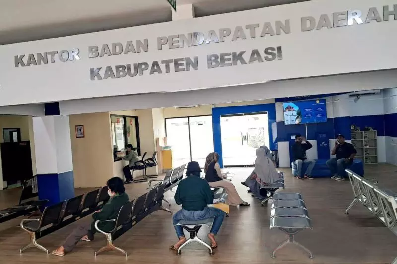 Sejumlah warga tengah menanti permohonan layanan yang diminta melalui kantor Badan Pendapatan Daerah Kabupaten Bekasi, Jawa Barat, Rabu.ANTARA/Pradita Kurniawan Syah.