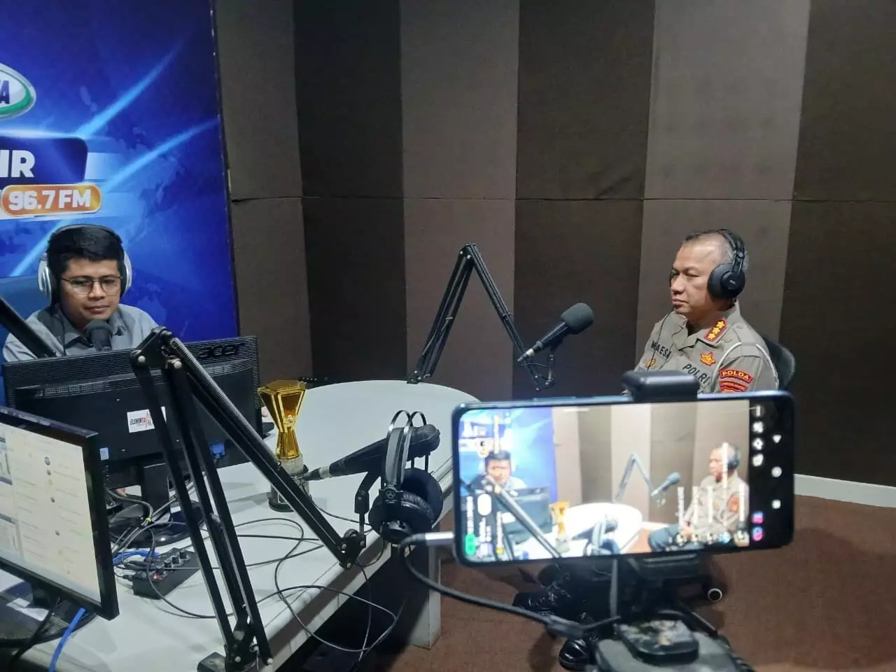 Direktur Lalu Lintas Polda Sumsel, Kombes Pol Maesa Soegriwo, S.H., S.I.K., M.H., dalam dialog program Polisi di Radio, di Elshinta Palembang, Kamis (12/3/2026), dipandu Ariek Kristo.