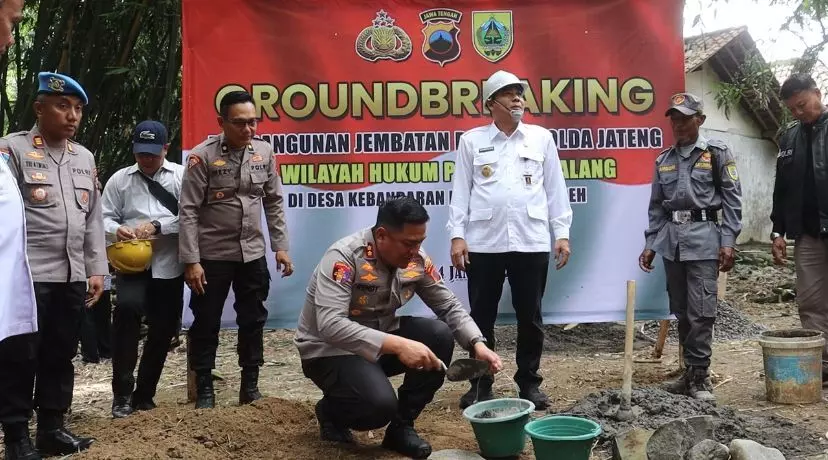 Kapolres Pemalang bersama Wakil Bupati Pemalang dan Forum Koordinasi Pimpinan Kecamatan (Forkopimcam) Bodeh melaksanakan groundbreaking pembangunan jembatan Presisi Polda Jateng di Desa Kebandaran, Kecamatan Bodeh, Kabupaten Pemalang, Rabu (14/1/2026).