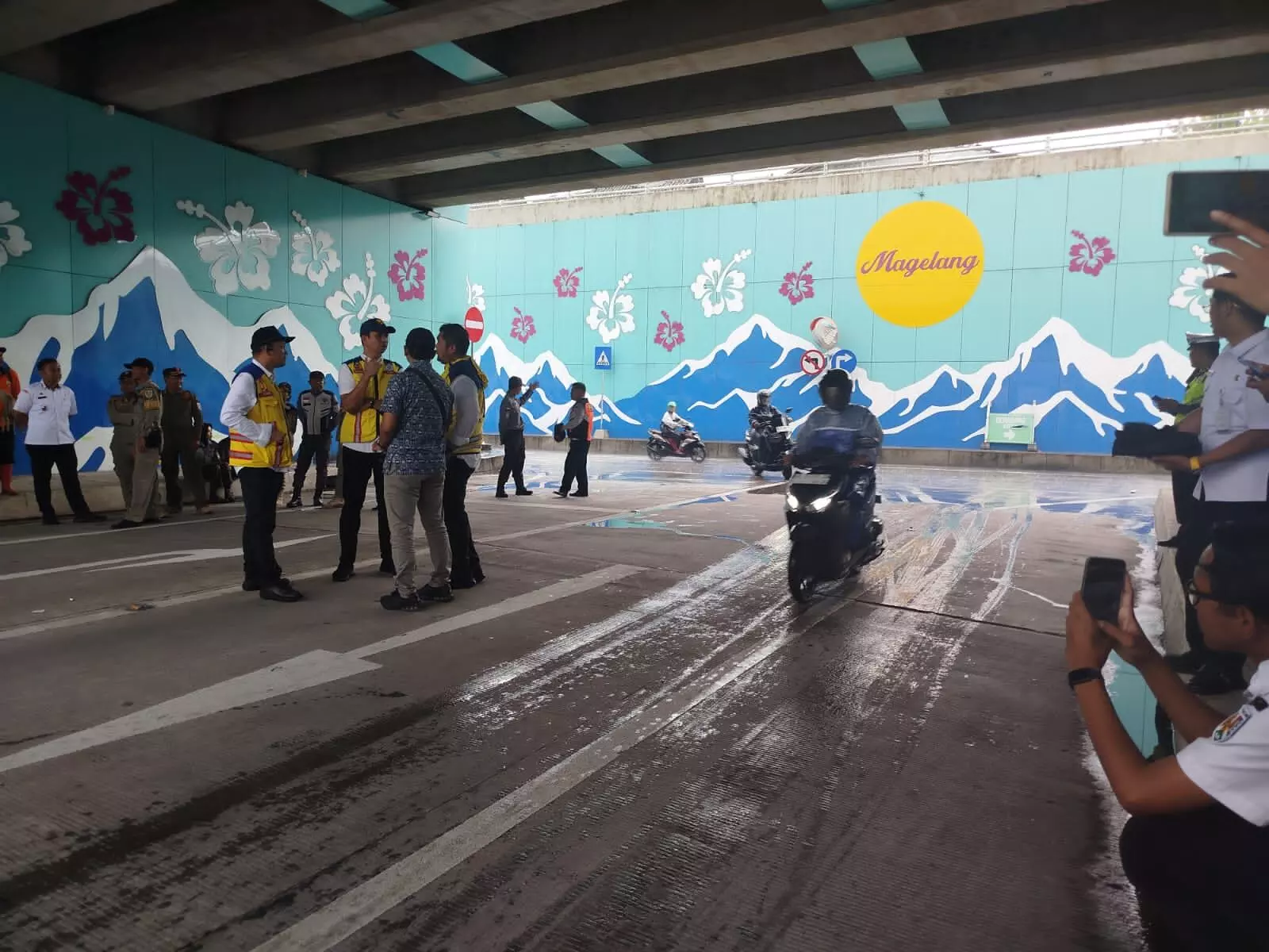 Di lokasi Flyover Canguk, sejumlah pejabat daerah, termasuk Wali Kota Magelang, Damar Prasetyono, dan Ketua DPRD Kota Magelang, Evin Septa Haryanto Kamil, menyaksikan prosesi peresmian melalui daring.