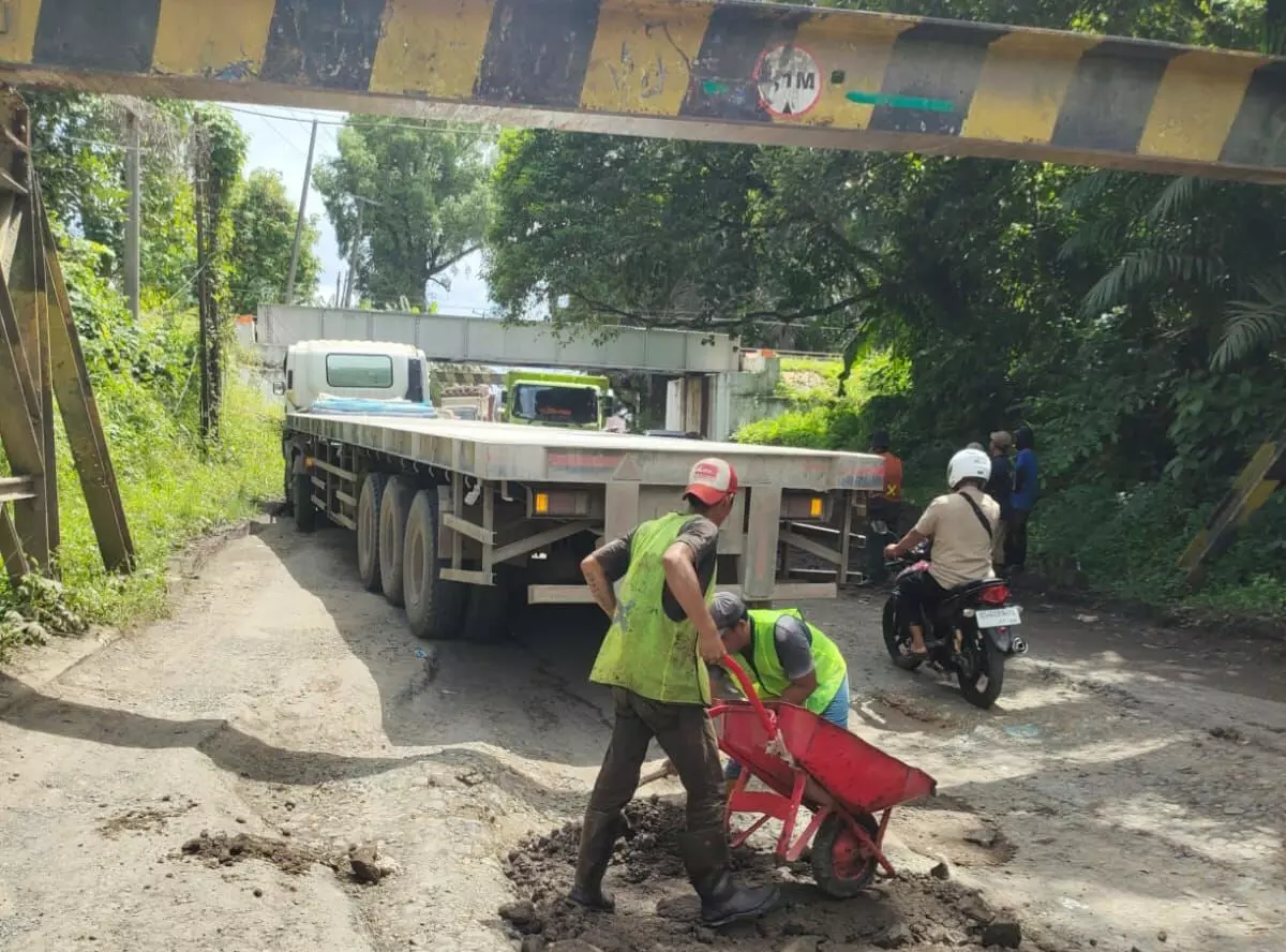Rusak, jalan di bawah rel kereta api Lubuk Batang OKU segera diperbaiki