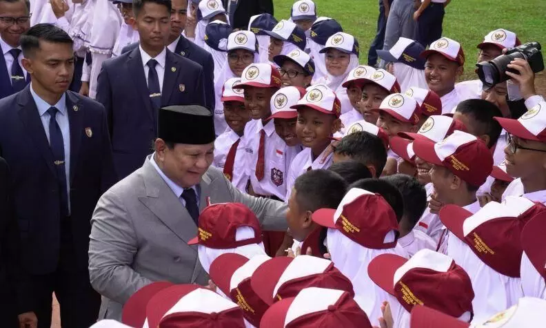 Anak-anak sekolah mengerubungi Prabowo, sampaikan terima kasih ada MBG