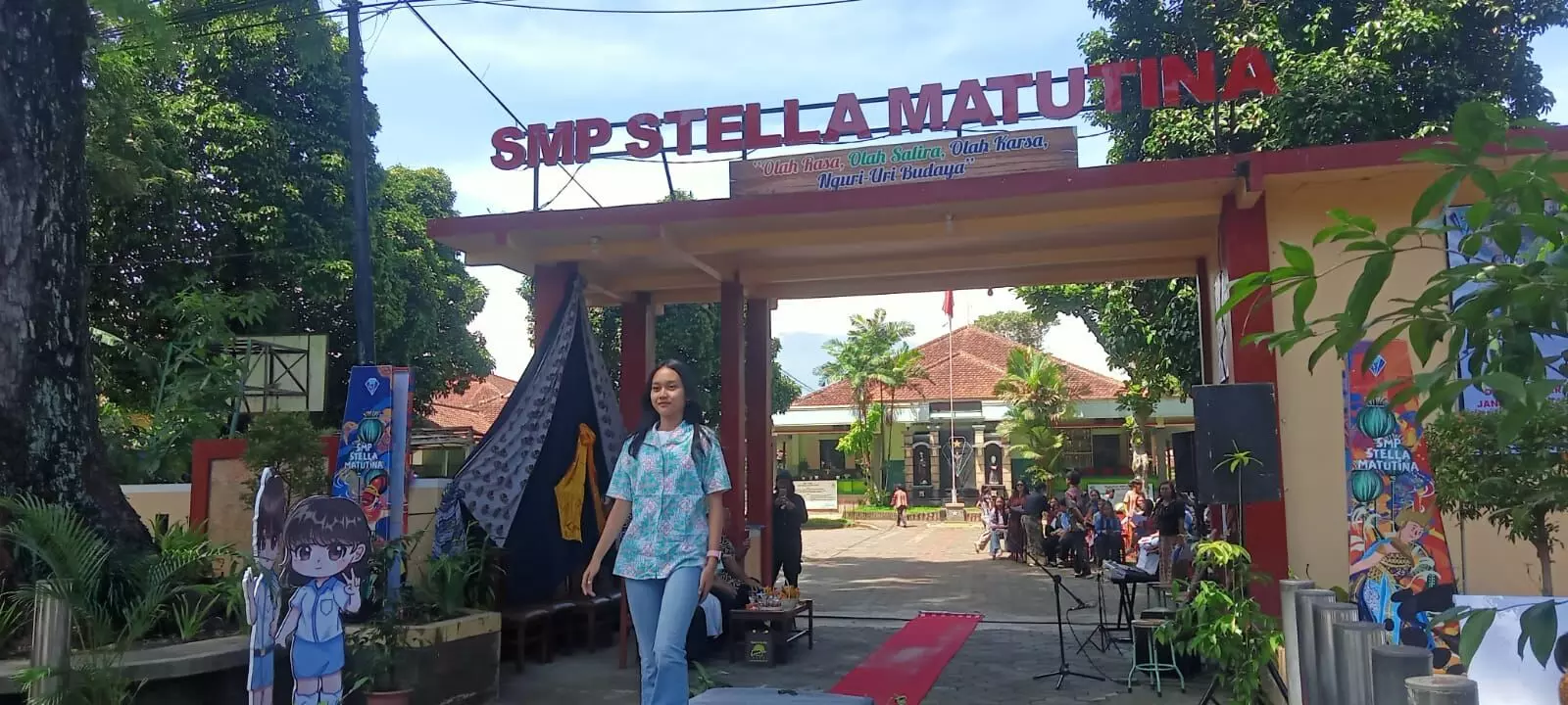 SMP Stella Matutina Salatiga, Jawa Tengah dalam memperingati Hari Batik Nasional 2025 menggelar Batik Fashion Show yang bertempat di pintu masuk sekolah Jalan Diponegoro, Kamis (2/10/2025).