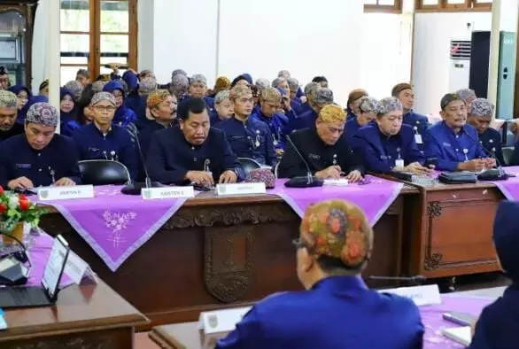 Rapat evaluasi satu tahun kepemimpinan Bupati dan Wakil Bupati Kudus Sam'ani Intakoris- Bellinda Birton berlangsung di Pendopo Belakang, Senin (23/2). Rapat dipimpin oleh bupati Kudus, selain agenda evaluasi juga penajaman arah kebijakan 2026. Forum diikuti jajaran pimpinan perangkat daerah untuk memastikan capaian kinerja terukur dan berkelanjutan.