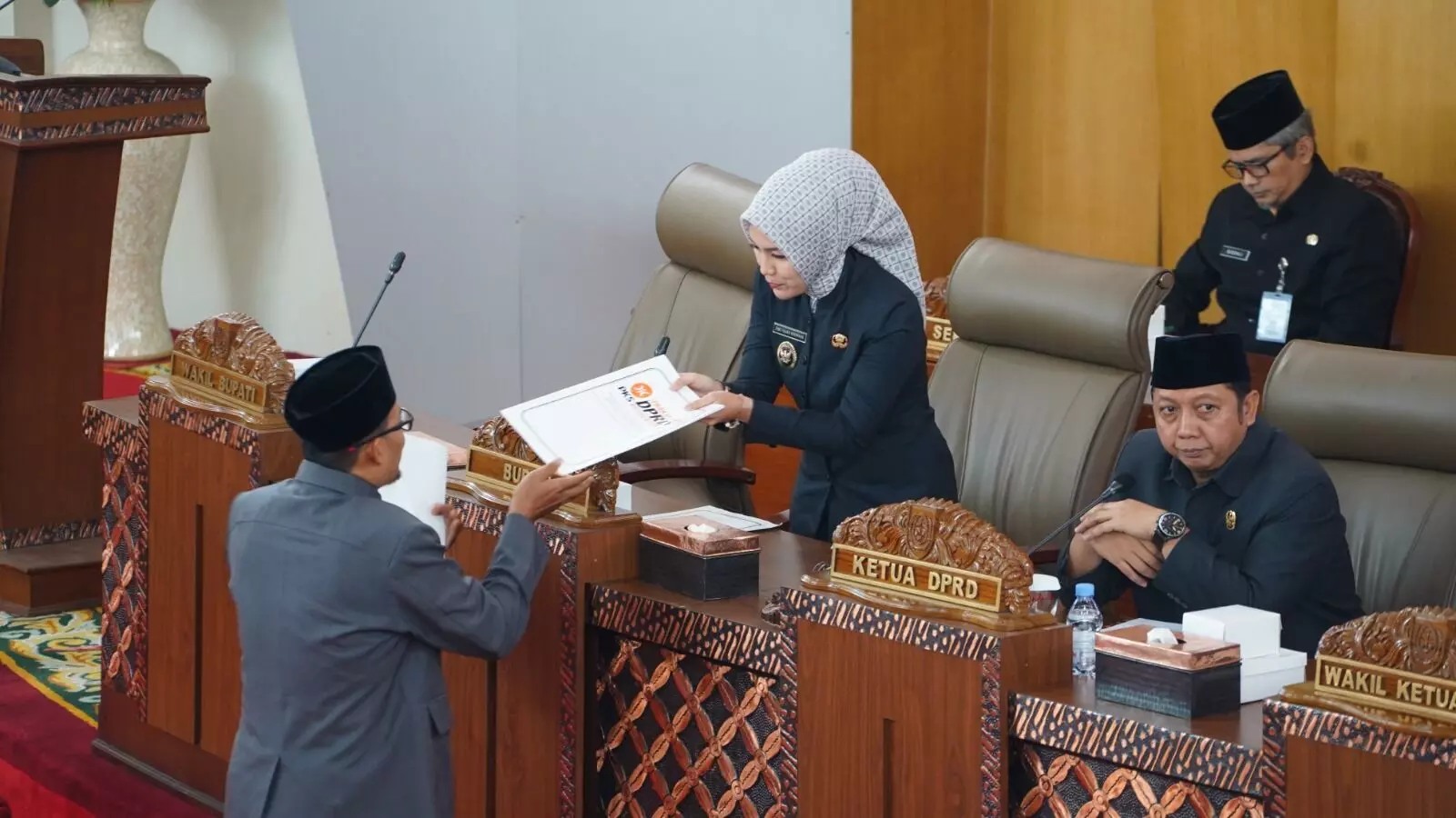 Dewan Perwakilan Rakyat Daerah (DPRD) Kabupaten Boyolali Jawatengah, gelar rapat paripurna penyampaian pandangan umum fraksi DPRD Kabupaten Boyolali terhadap Ranperda Tentang Perubahan Atas Peraturan Daerah Nomor 16 Tahun 2023 Tentang Pajak Daerah dan Retribusi Daerah.
