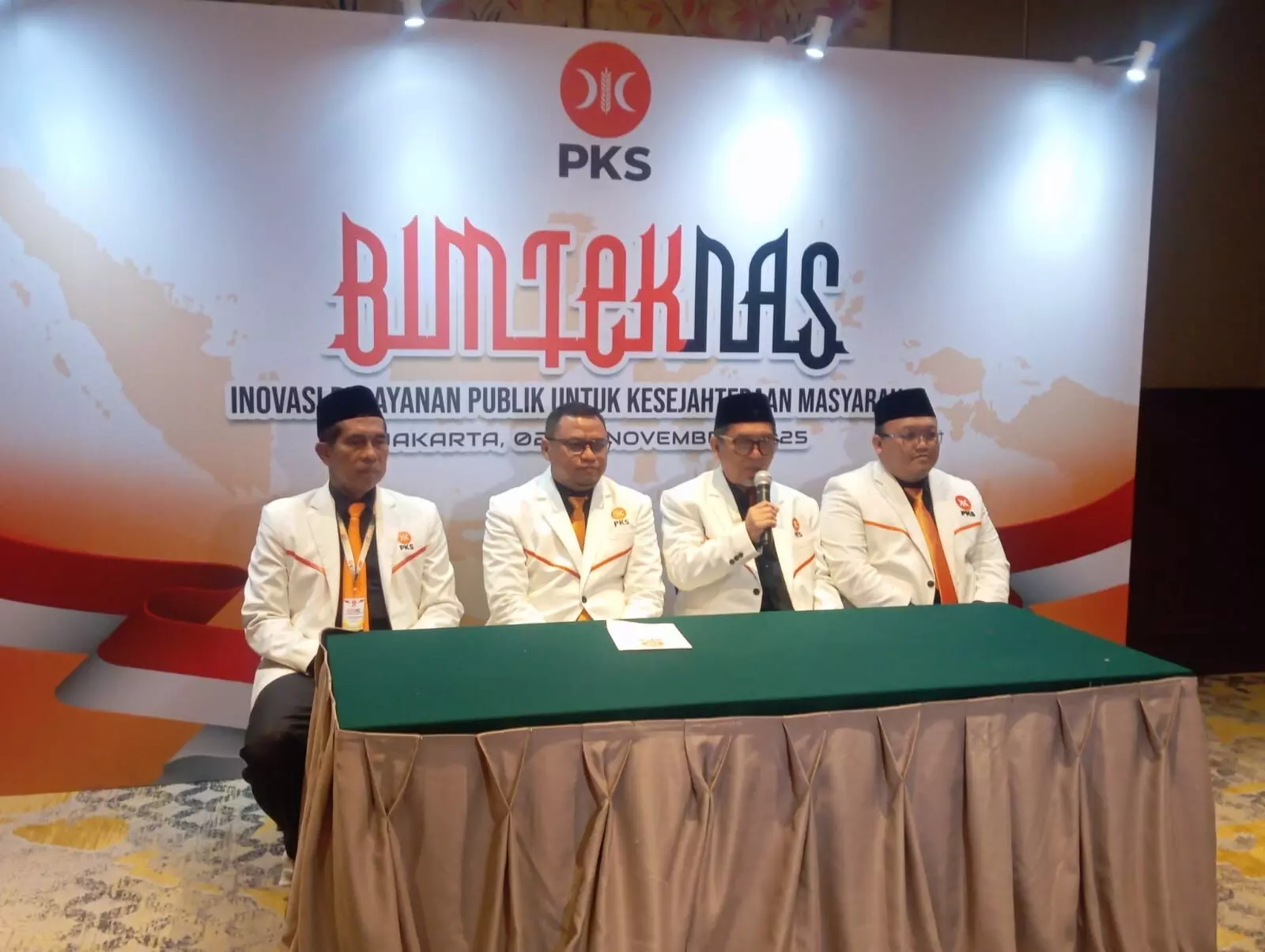“Terima kasih kepada teman-teman media yang hadir di acara Bimtek Nasional PKS. Acara ini diikuti oleh seluruh anggota DPR RI, DPRD provinsi, kabupaten, kota, serta kepala daerah PKS yang hadir mulai hari ini dan akan berlanjut hingga esok,” ujar Muzzammil dalam konferensi pers usai pembukaan acara.