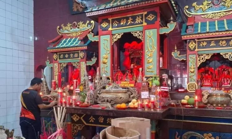 "Bagian kelenteng yang sudah kusam juga dicat ulang berwarna merah. Ornamen khas disusun meriah, terus dupa tempat abu juga dibersihkan," katanya di Cikarang, Senin.
