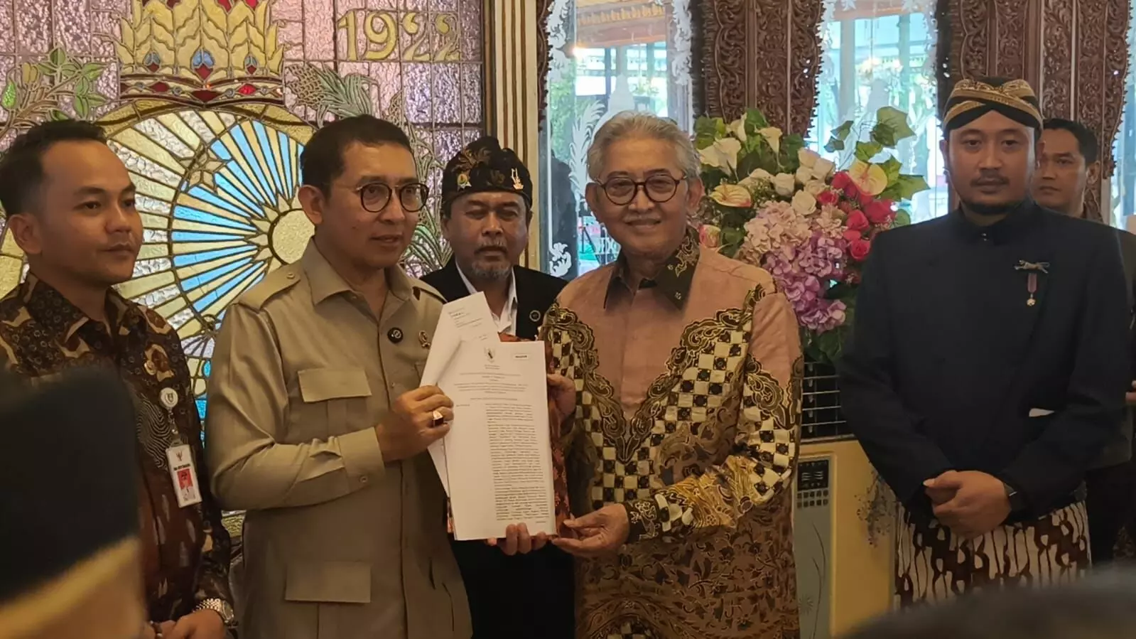 Fadli Zon menyerahkan SK penunjukan Pelaksana Pelindungan, Pengembangan, dan/atau Pemanfaatan Kawasan Cagar Budaya Keraton Kasunanan Hadiningrat kepada Maha Menteri KGPA Tedjowulan. Dalam sambutannya, Menbud menekankan bahwa penetapan Keraton Kasunanan Surakarta Hadiningrat sebagai kawasan cagar budaya nasional merupakan bentuk pengakuan negara atas nilai strategis keraton dalam sejarah kebudayaan dan peradaban Indonesia.