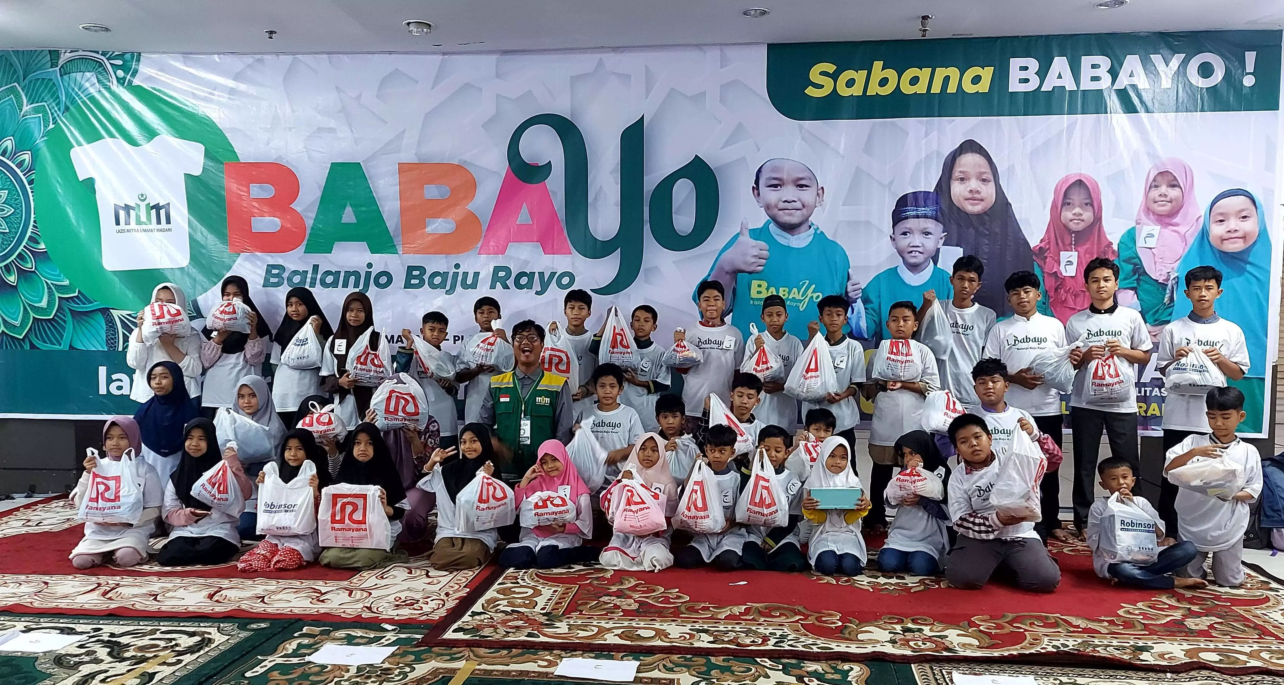 Di penghujung Ramadhan 1447 H, Lazis Mitra Ummat Madani Padang kembali menggelar Program Kolosal BABAYO atau Balanjo Baju Rayo. Dengan mengajak sebanyak 500 anak yatim, dhuafa, anak penyandang disabilitas dan santri penghafal Al Quran untuk belanja kebutuhan lebaran. Event pamungkas LAZIS MUM Padang menjelang lebaran ini termasuk program paling ditunggu keluarga yang memiliki anak yatim atau dhuafa setiap tahunnya di Kota Padang. Pada program ini setiap anak akan mendapat kesempatan diajak langsung terlibat untuk memilih sendiri pakaian lebaran mereka.