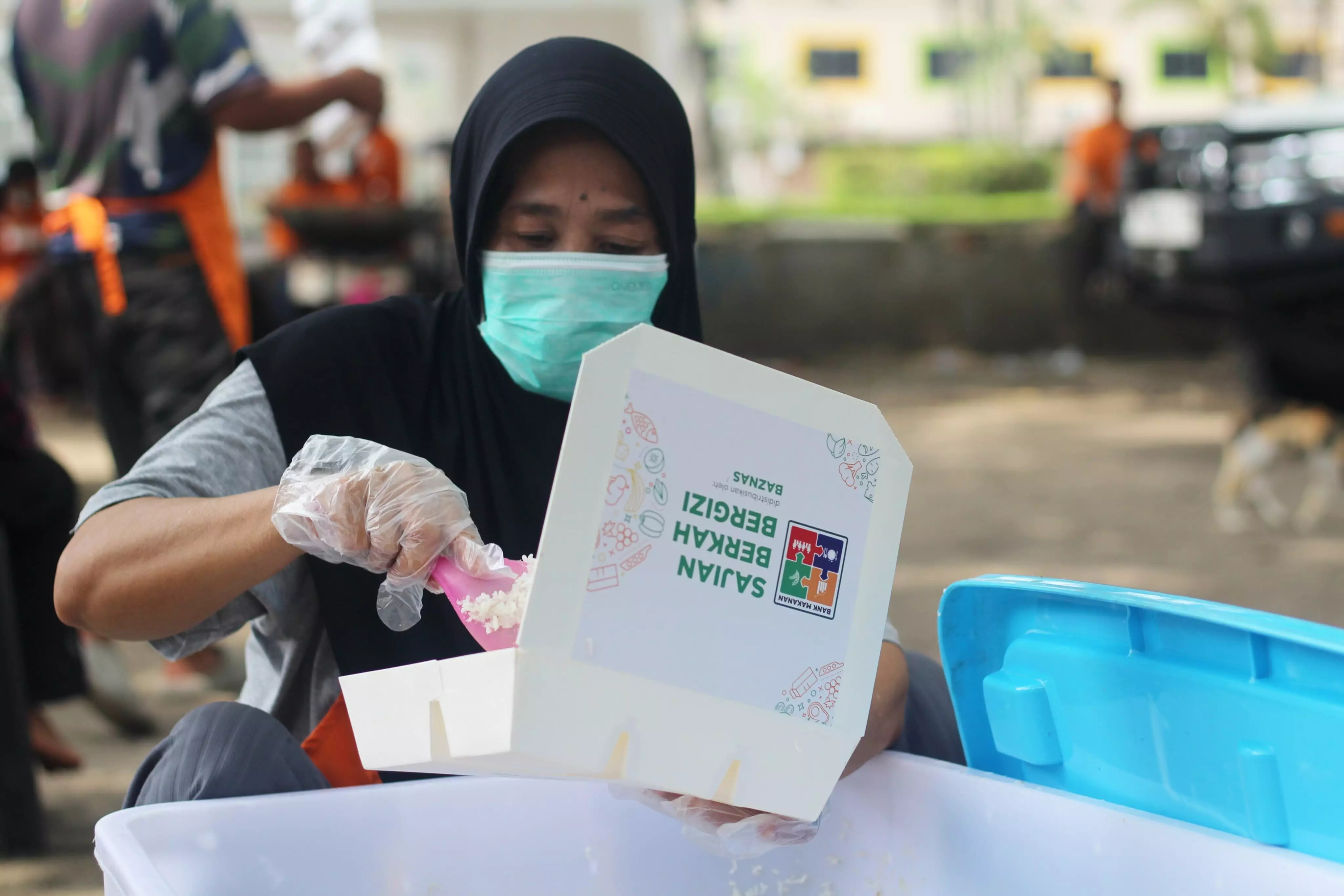 Badan Amil Zakat Nasional (BAZNAS) RI melalui program Bank Makanan melaksanakan kegiatan “Sajian Berkah Bergizi” dengan mendistribusikan 5.000 paket makanan siap santap kepada masyarakat miskin dan santri pondok pesantren di wilayah Pelabuhanratu dan Cikakak, Kabupaten Sukabumi, Jawa Barat.