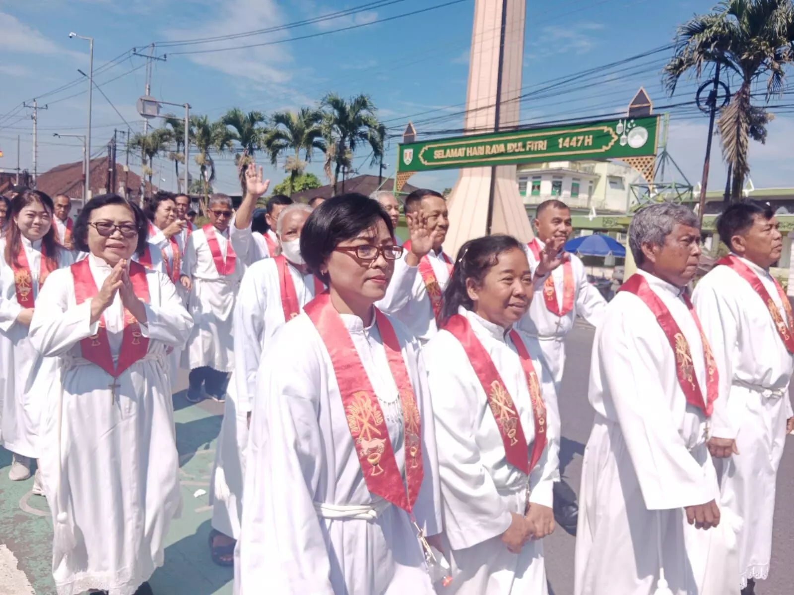 Ribuan jemaat gereja Katholik Paroki Santo Ignatius Kota Magelang Jateng, mengikuti prosesi kirab jalan salib dalam ibadah Jumat Agung, Jumat (3/4/2026).