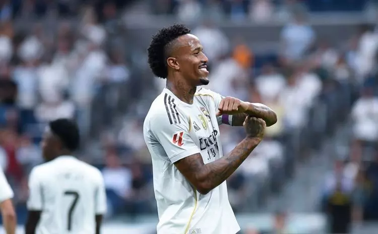 Arsip foto - Penyerang Real Madrid Eder Militao merayakan gol ke gawang RCD Espanyol di Stadion Santiago Bernabeu, Madrid, Spanyol, (20/9/2025). ANTARA/Xinhua/Gustavo Valiente/aa.