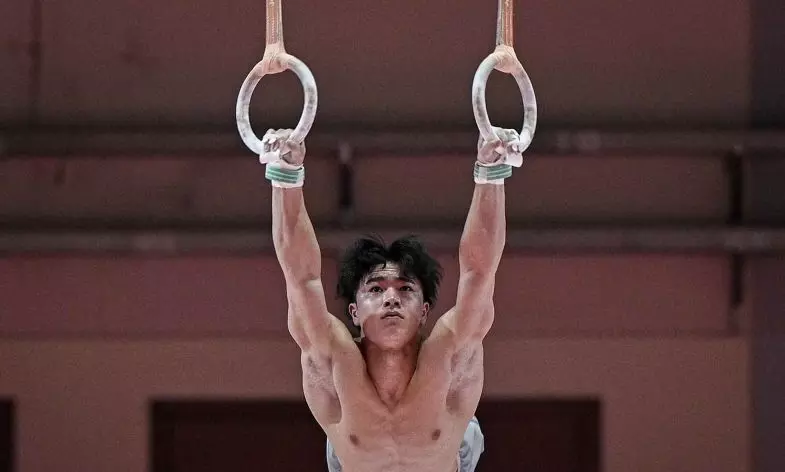 Pesenam putra Jepang Shinnosuke Oka berlatih saat sesi latihan Kejuaraan Dunia Gimnastik 2025 atau 53rd FIG Artistic Gymnastics World Championships 2025 di Jakarta Convention Center (JCC), Jakarta, Rabu (15/10/2025). Sejumlah pesenam mulai melakukan sesi latihan sebelum bertanding dalam 53rd FIG Artistic Gymnastics World Championships 2025 pada 19-25 Oktober 2025 di Indonesia Arena, Jakarta. ANTARA FOTO/Fauzan/YU
