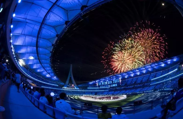 Suasana pesta kembang api saat upacara Pembukaan SEA Games 2023 di Stadion Morodok Techno National Stadium, Phnom Penh, Kamboja, Jumat (5/5/2023). ANTARA FOTO/M Agung Rajasa/aww.