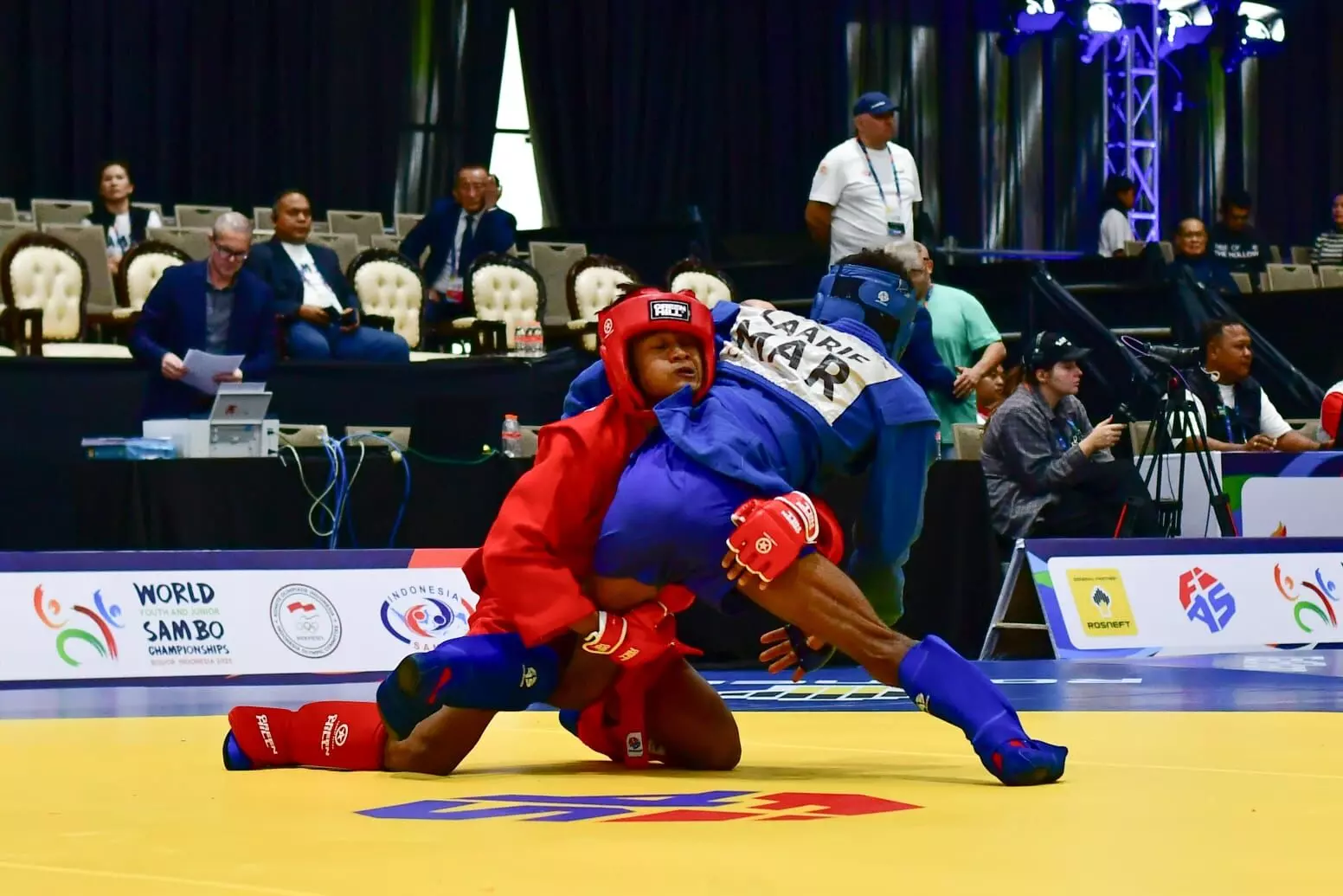 Penampilan Handezka Vaktorias berhasil mencuri perhatian pada hari pertama Kejuaraan Dunia Sambo Remaja dan Junior atau World Youth and Junior Sambo Championship 2025, Jumat (3/10/2025).