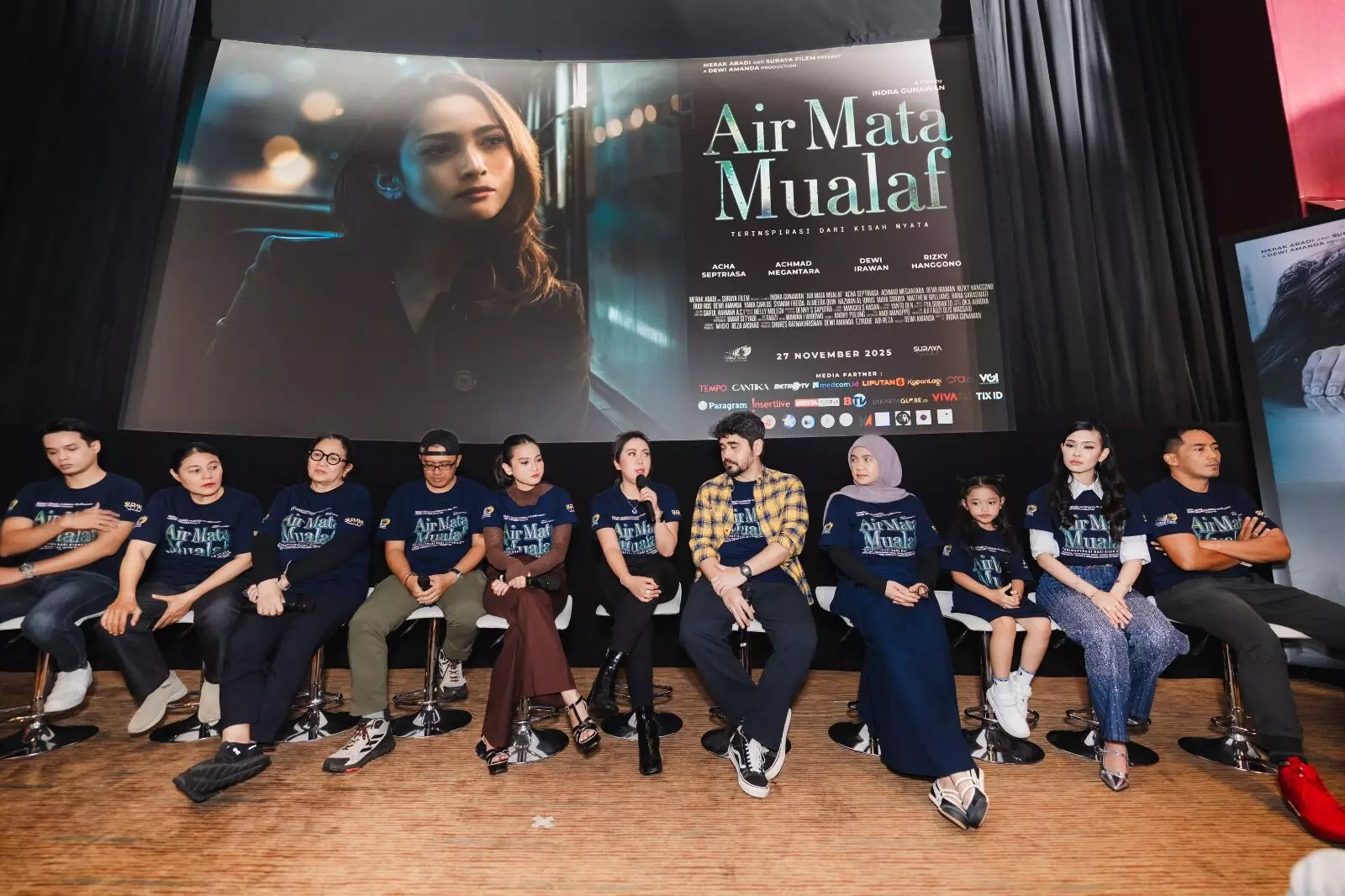 Merak Abadi Productions dan Suraya Filem Malaysia secara resmi meluncurkan trailer dan poster resmi film Air Mata Mualaf dalam konferensi pers yang digelar Senin (27/10/2025), di XXI Plaza Senayan, Jakarta. Peluncuran sebagai langkah memperkenalkan kepada publik sebuah film drama keluarga yang hangat dan reflektif—tentang keluarga, cinta, dan keberanian memilih jalan hidup sendiri.