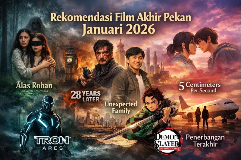 Mencari rekomendasi film akhir pekan Januari 2026? Pekan ini bioskop menghadirkan beragam pilihan menarik dari berbagai genre, mulai dari horor lokal, drama keluarga, romansa anime, hingga sci-fi dan fantasi yang paling dinantikan. Berikut rangkuman film terbaru dan pilihan terbaik yang bisa Anda tonton.