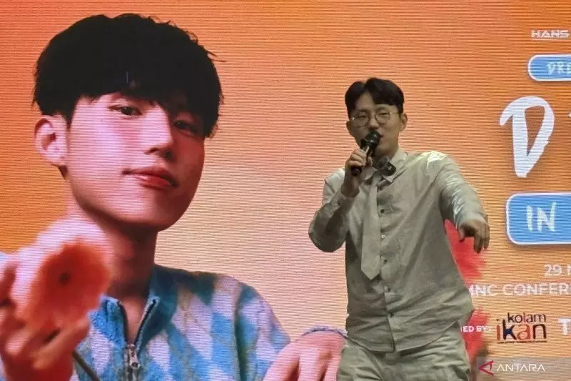 Musisi asal Korea Selatan Dept mengaku ingin lebih banyak berkolaborasi dengan penyanyi tanah air dalam konferensi pers di Jakarta, Sabtu (29/11/2025). (ANTARA/Hreeloita Dharma Shanti).