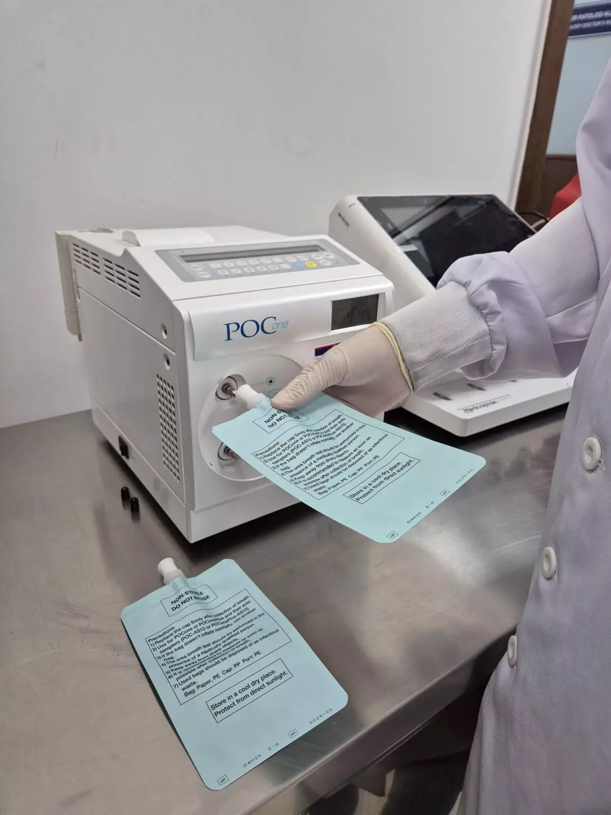 Pasien kemudian berbaring ke sebelah kiri selama 5 menit, yang diikuti dengan posisi duduk tegak selama 15 menit. Pasien kemudian akan diberikan kantung sampel ke-2 yang ditiup dalam 1 kali hembusan. Kedua kantung sampel UBT kemudian akan diperiksa di laboratorium.