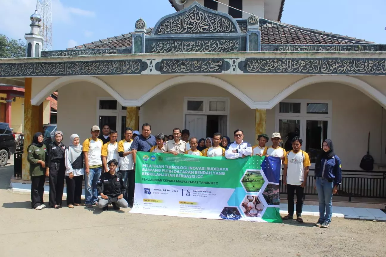 Kedua perguruan tinggi ini menyelenggarakan kegiatan Pelatihan penerapan Teknologi Inovasi Budidaya Bawang Putih Dataran Rendah Berkelanjutan Berbasis IoT dan penguatan kelembagaan kelompok tani di Desa Nunuk Baru, Kabupaten Majalengka.