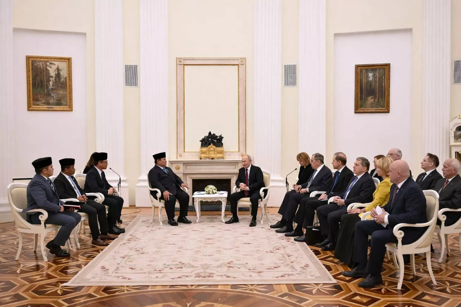 "Karena itu kami merasa sangat perlu untuk konsultasi bagaimana kita hadapi situasi ke depan, dan terutama kalau bisa kita terus mempererat kerjasama terutama di bidang ekonomi dan energi. Sekali lagi saya terima kasih, diterima dalam waktu yang begitu singkat," ujar Presiden Prabowo di hadapan Presiden Vladimir Putin.