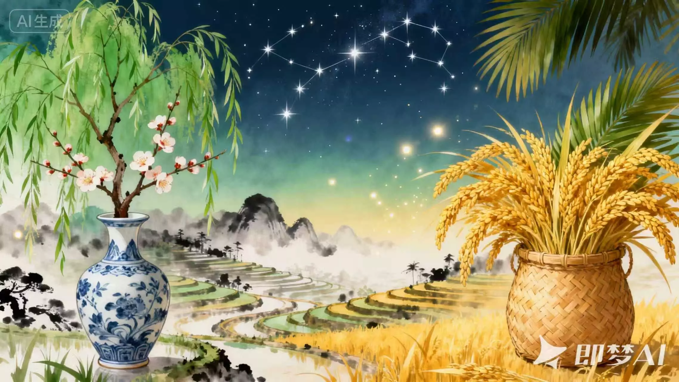 Ketika gagang Bintang Biduk menunjuk ke arah "寅"(Yin), Tiongkok menyambut "Lichun" - awal harapan di mana es mencair dan tunas merekah. Sementara di kepulauan tropis Indonesia, musim panen emas padi awal justru tiba. Terpisah oleh gunung dan laut, dua peradaban ini sama-sama menghormati ritme alam: masyarakat Tiongkok merayakan kehidupan baru dengan ritual "menggigit musim semi", sementara rakyat Indonesia mensyukuri panen melalui upacara "Melasti".
